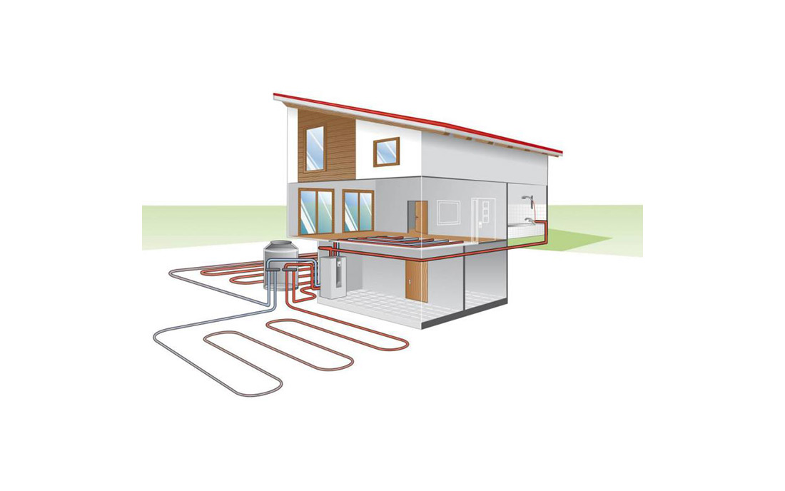 Die Sole-Wasser-Wärmepumpe gewinnt die Wärme aus dem Erdreich und überträgt sie in Form von Heizungs- und Brauchwasser.