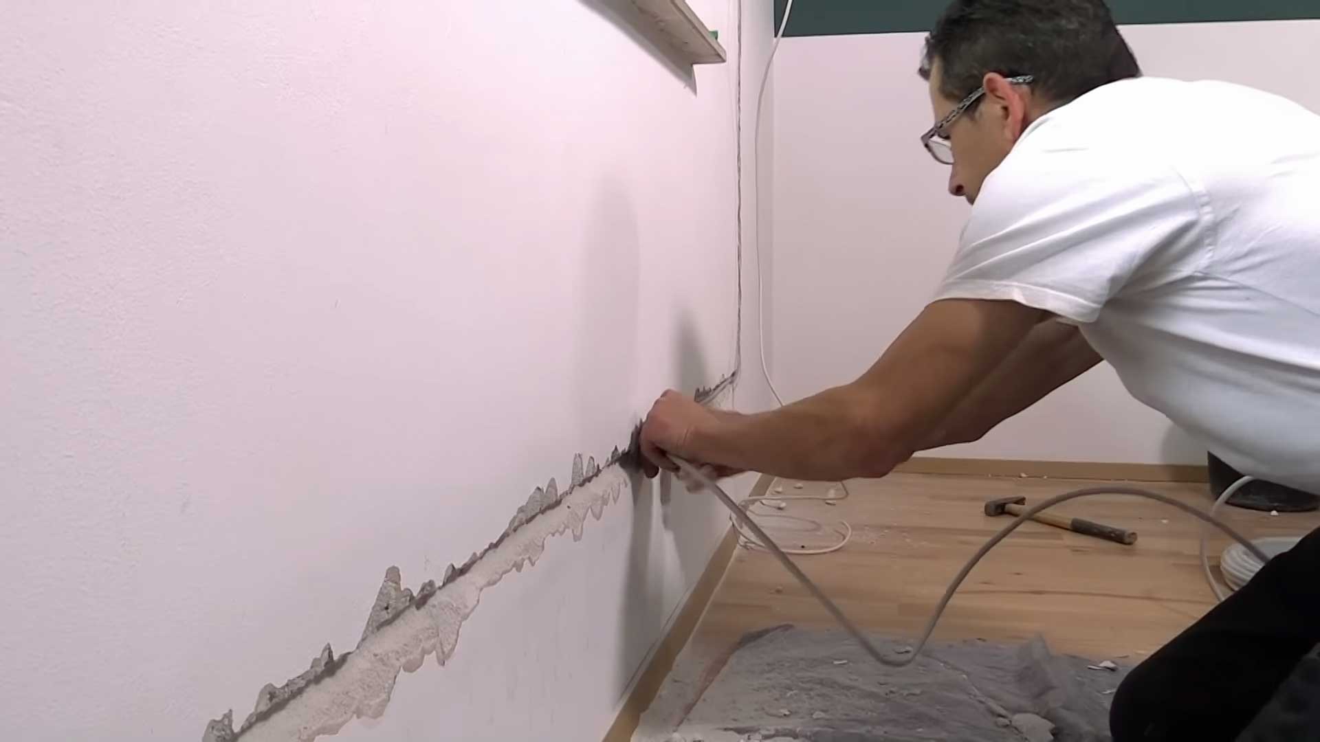 Stelle nun die Wandschlitze für die Kabelführung her und ziehe die Kabel vom Gerät ausgehend ein.
