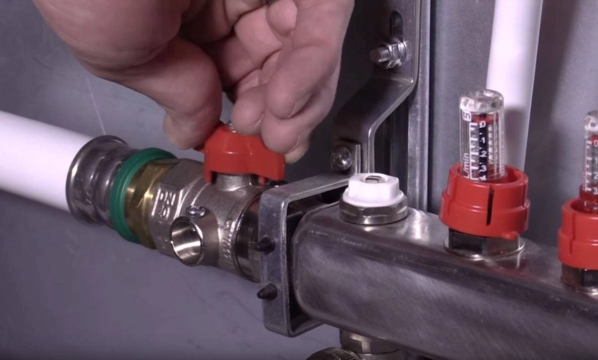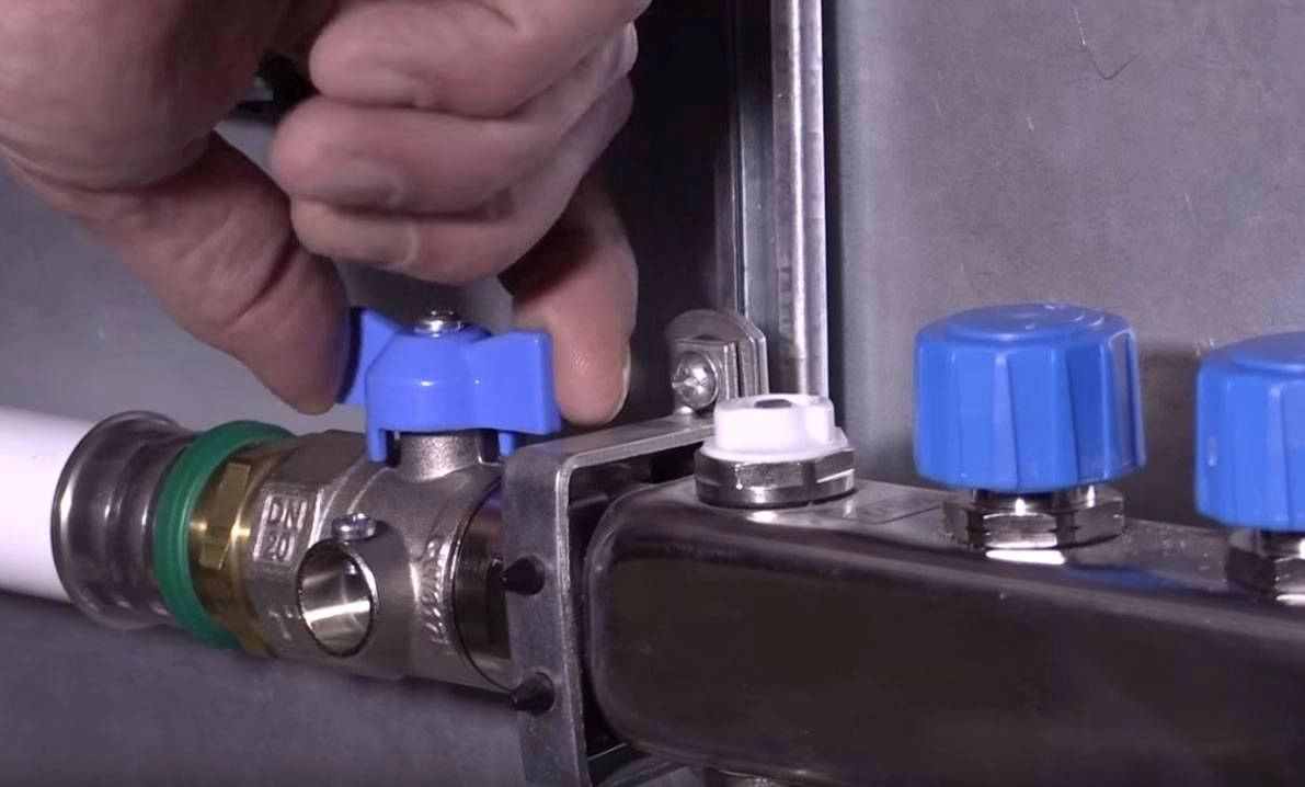 Der Wasserzulauf und die beiden KFE-Ventile am Heizkreisverteiler werden nun geöffnet: