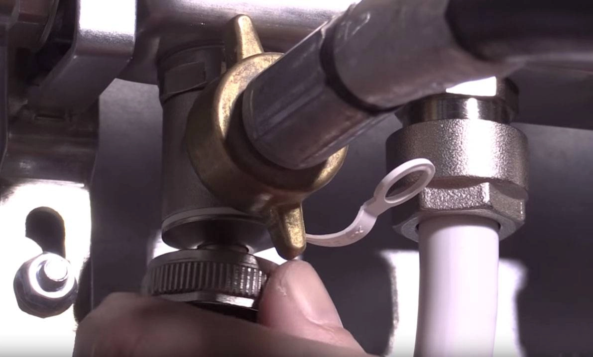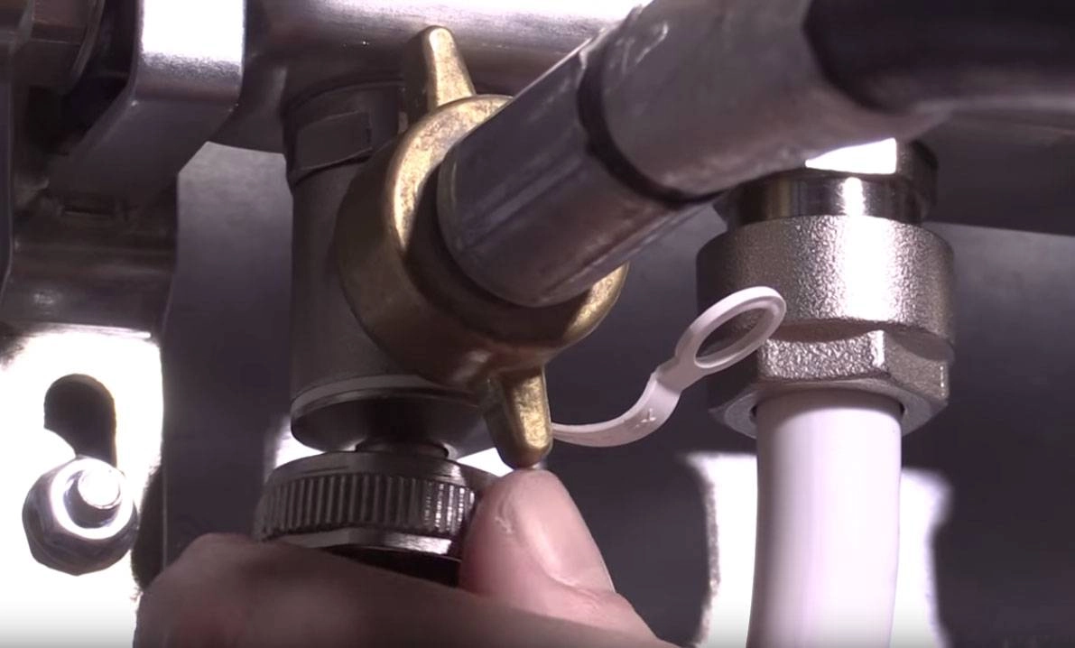 Anschließend wird der gespülte Heizkreis wieder durch Zudrehen der Kappe geschlossen: