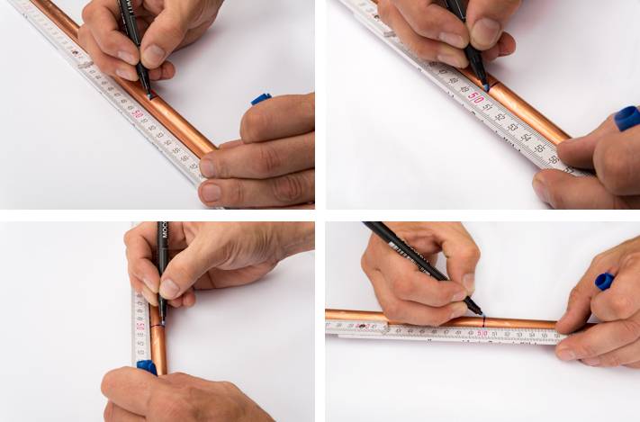 Hierfür zunächst die benötigte Länge der Leitung auf dem Kupferrohr auftragen…