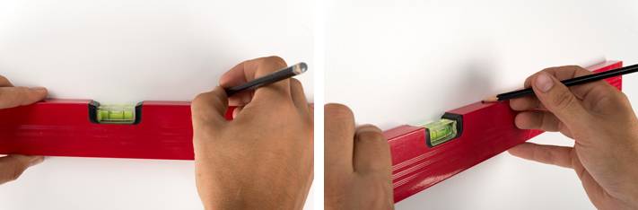 Im ersten Schritt die Bohrlöcher für die Wandhalterung bzw. für einzelne Anschlüsse wie WC-Druckspüler oder Urinal horizontal auf der Wand vormarkieren.
