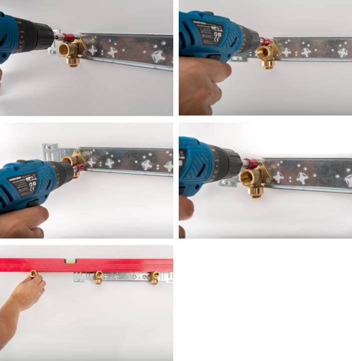Im nächsten Schritt die Wandhalterung für beispielsweise Waschbecken-Absperrventile montieren. Damit sind die Abstände für die Rohrsteckverbindungen zur Wasserleitung definiert.