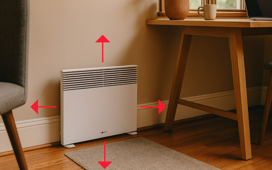 Ein Wandkonvektor erwärmt die Raumluft nach dem Prinzip der Konvektion. Kalte Luft wird von unten angesaugt, im Gerät erwärmt und steigt anschließend als warme Luft nach oben. Dadurch entsteht eine gleichmäßige Luftzirkulation im Raum, die für schnelle und angenehme Wärme sorgt. Wandkonvektoren eignen sich besonders gut als Zusatzheizung oder für Räume, die regelmäßig, aber nicht dauerhaft beheizt werden.