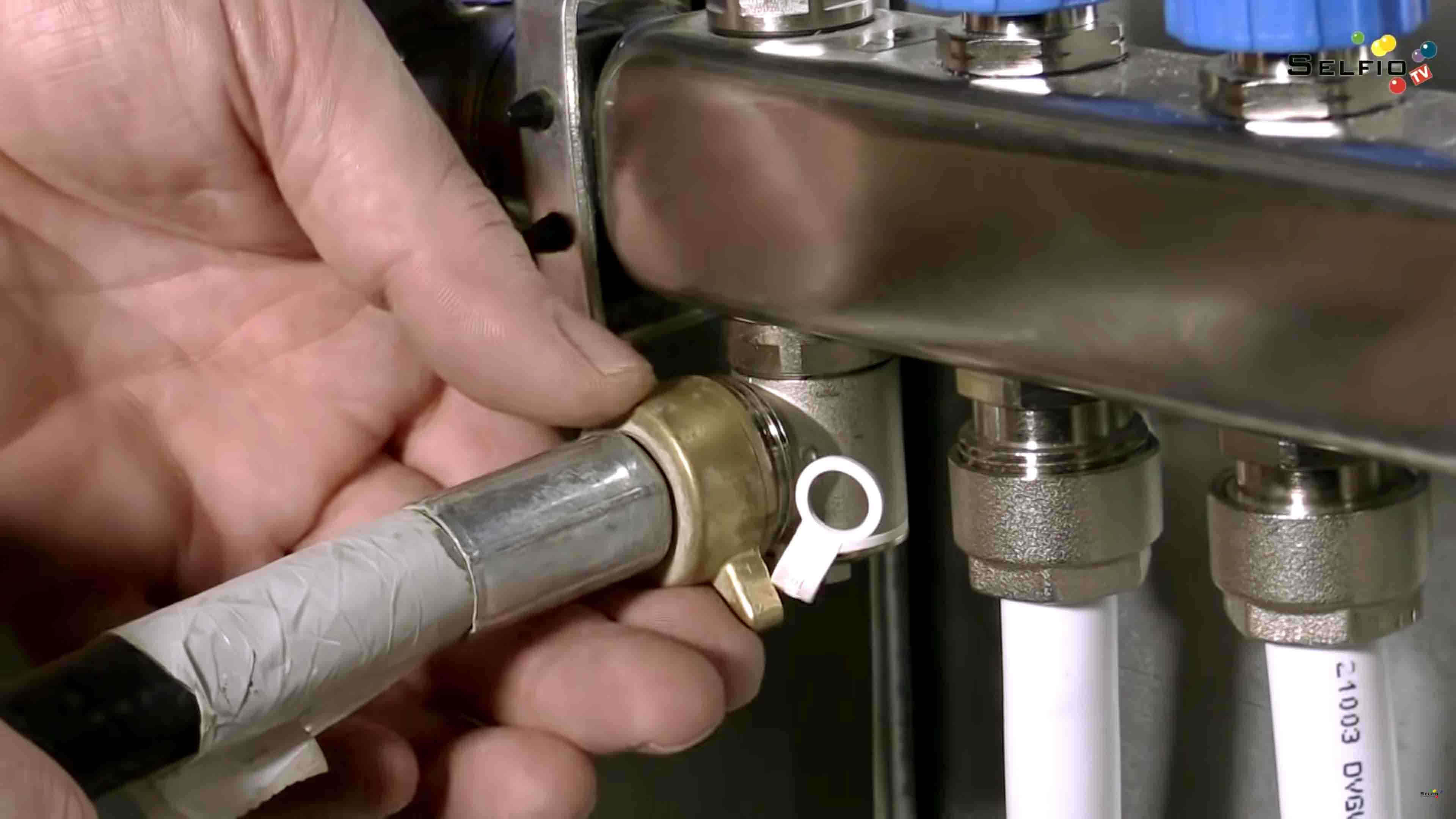Installiere die Füll- und Entleerungshähne, um das System bei Bedarf leicht befüllen oder entleeren zu können.