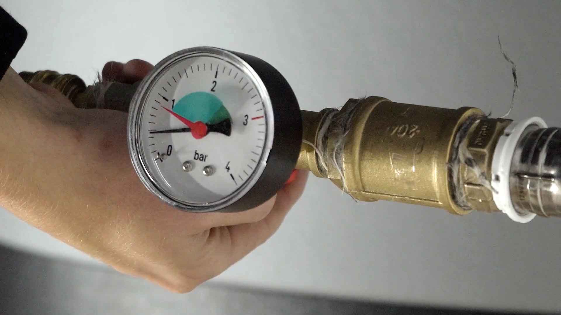 Bevor du das System in Betrieb nimmst, führe eine Druckprüfung durch, um sicherzustellen, dass alle Verbindungen dicht sind und keine Leckagen vorhanden sind. Fülle das System mit Wasser und prüfe den Druck.