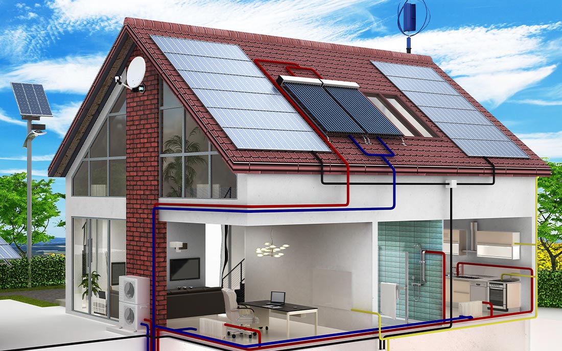 Eine Wärmepumpe kann als Teil eines hybriden Heizsystems gemeinsam mit einem weiteren Wärmerzeuger auf Basis erneuerbarer Energien genutzt werden, wie zum Beispiel mit Solarthermie. Die Laufzeiten der Heizsysteme so können so angepasst werden, dass sie maximal effizient laufen. Um Strom zu sparen, kann zum Beispiel erstmal ausschließlich die Solarthermie-Anlage genutzt werden, bis sie den Bedarf an Heizwärme oder Warmwasser nicht mehr decken kann. Im Idealfall wird erst dann wird die Wärmepumpe angeschaltet.