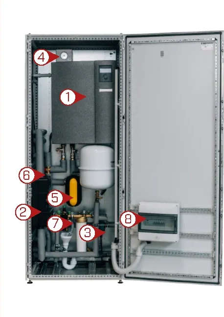 Der ThermCube bietet die innovative, revolutionär einfache und schnelle Installation einer Luft-Wasser-Wärmepumpe für die Bereitstellung von Heizwärme und Warmwasser. Bei der All-in-one-Heizzentrale sind die Heizungskomponenten kompakt im Schrank verbaut. Dadurch benötigt er wenig Platz und der Schrank lässt sich auf weniger als 1 qm Fläche im Heizungskeller oder auch im Hauswirtschaftsraum unterbringen.